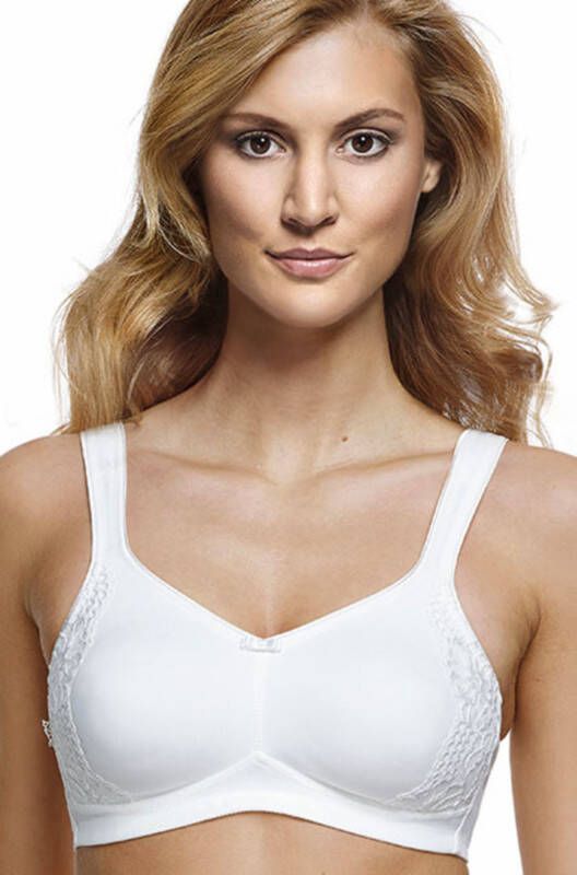 Minimizer-beha zonder beugel van Susa. Met opgestikt kant aan de zijkant van de voorgevormde cups. De iets bredere comfortbandjes zijn achter verstelbaar.