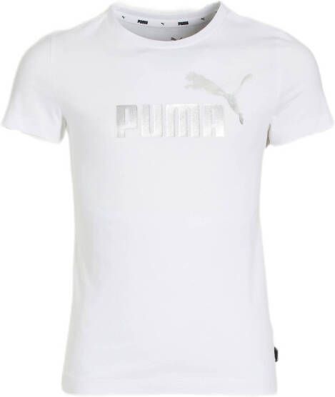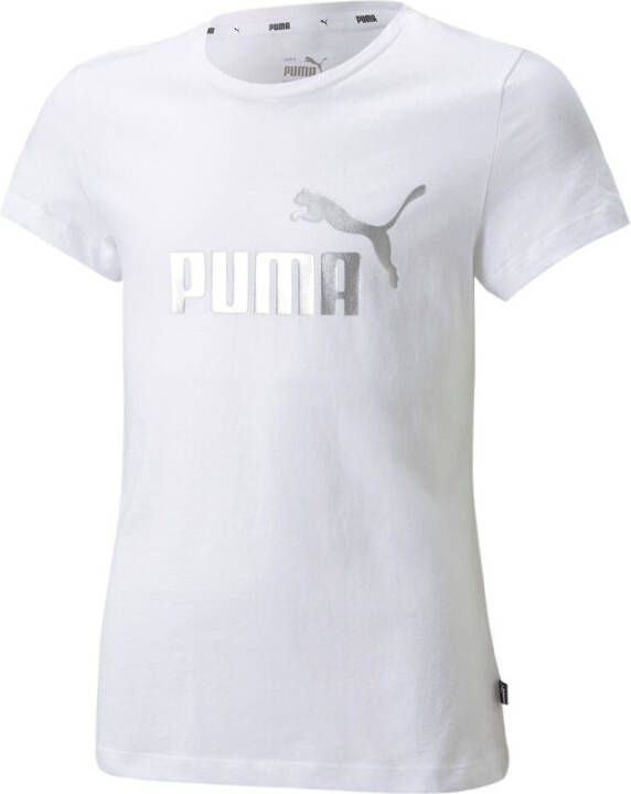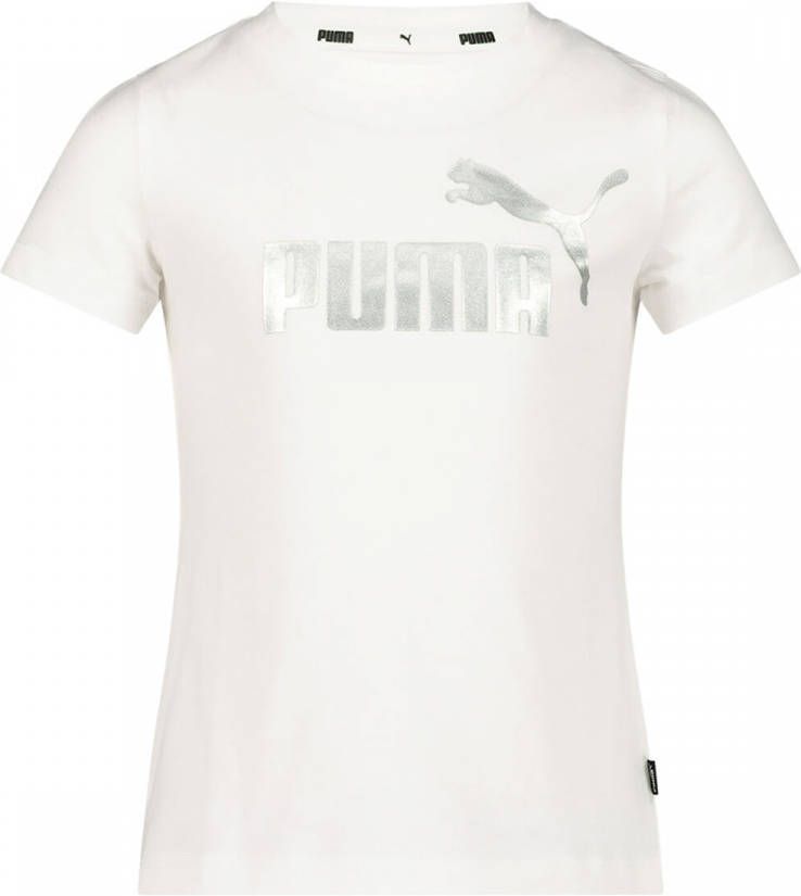 Puma T shirt met korte mouwen voor meisjes in de kleur wit. Dit T shirt is voorzien van een ronde hals en heeft op de voorkant een Puma logo. Dit model heeft een regular fit. Sportive vibes!.